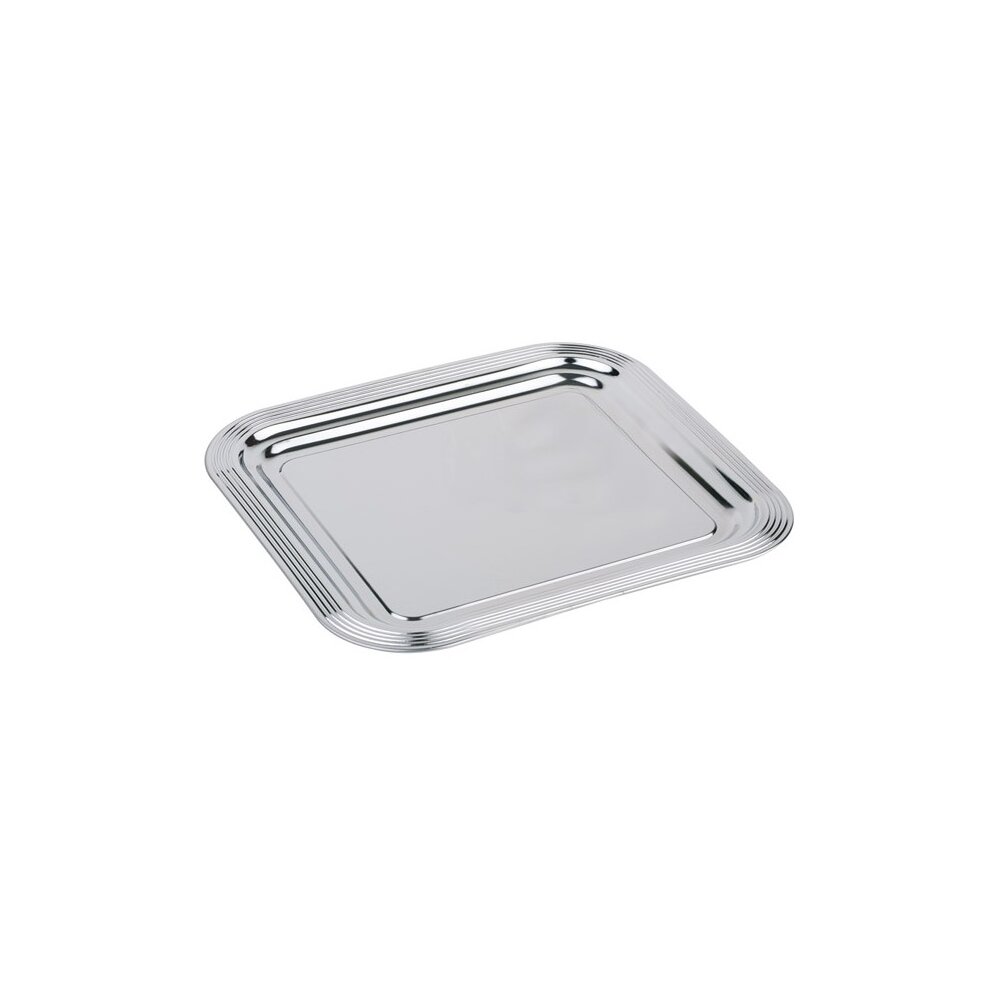 Details zum Artikel GN 2/3 Partyplatte CLASSIC 35,4 x 32,5 cm, Metall vernickelt und glanzverchromt mit Liniendekor Rand eingerollt Materialdicke 0,35 nicht für den Kontakt mit Lebensmitteln geeignet nicht spülmaschinengeeignet