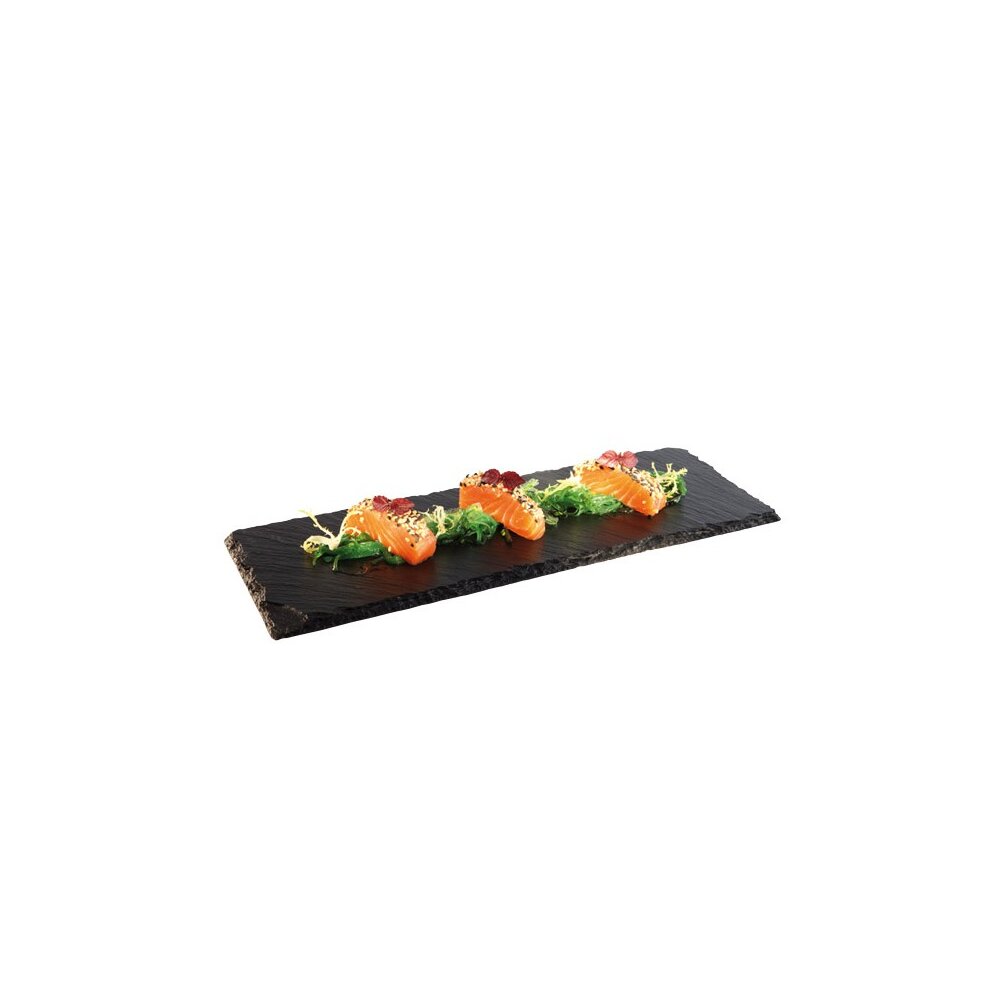 Details zum Artikel Naturschieferplatte 30 x 12 cm Materialstärke 6 – 9 mm möbelschonende Füßchen gebrochene Kanten glänzende, versiegelte Oberfläche geeignet für Gefrierfach NICHT Spülmaschinengeeignet stapelbar