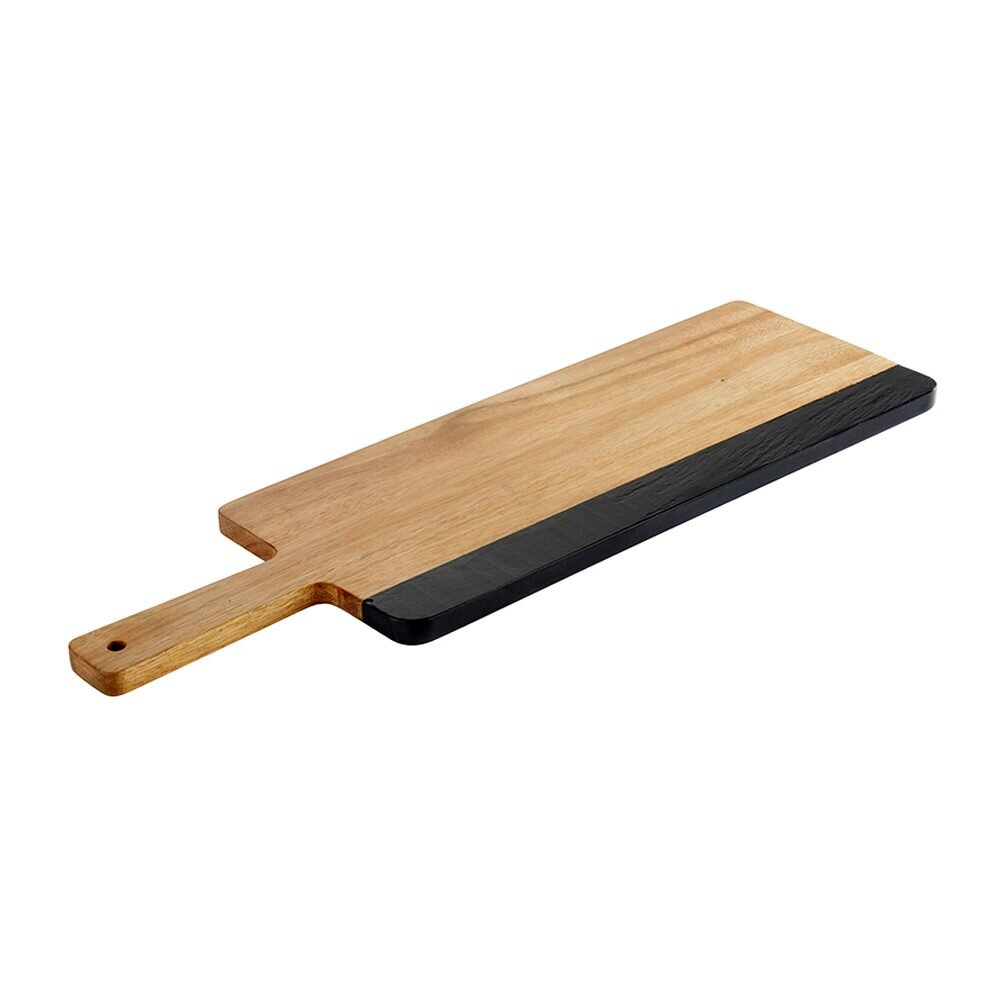Details zum Artikel Servierbrett AKAZIE SCHIEFER 36,5 x 15 cm, H: 1,5 cm Akazienholz, Naturschiefer Griff: 12 cm mit Hängeloch: Ø 1 cm