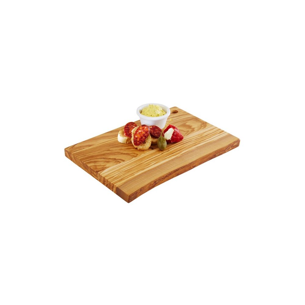 Servierbrett -OLIVE- 30 x 20,5 cm, H: 2 cm Servierbrett im Naturschnitt, aus Olivenholz jedes Brett wird handgefertigt und lackiert mit 19mm Aufhängbohrung 30 x 20,5 cm, H: 2 cm Holz (Olivenbaum) ohne Griff nicht spülmaschinengeeignet, nur feucht abwischen!