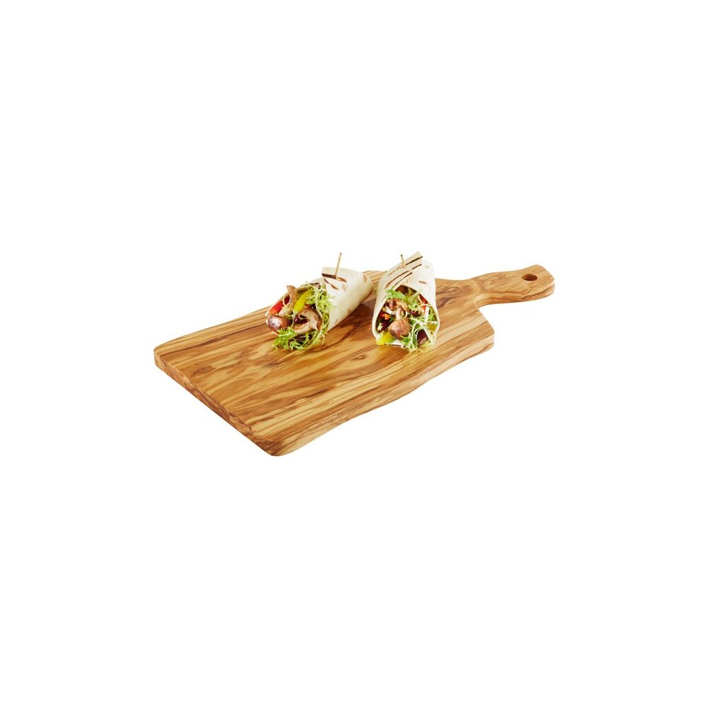 Servierbrett -OLIVE- 31 x 20 cm, H: 1,5 cm Servierbrett im Naturschnitt jedes Brett wird handgefertigt und lackiert mit 19mm Aufhängbohrung alle Produkte unterscheiden sich naturbedingt in Form, Maserung und Größe 31 x 20 cm, H: 1,5 cm Holz (Olivenbaum) Griff: 9 cm