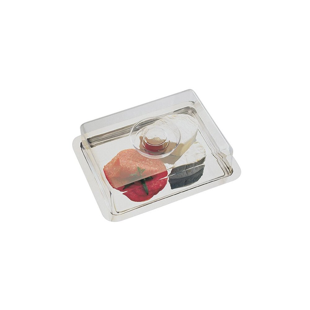 Details zum Artikel Tablett mit Haube 25 x 19 cm, Haubenhöhe 7 cm Tablett: 18/0 Edelstahl Haube: Polystyrol