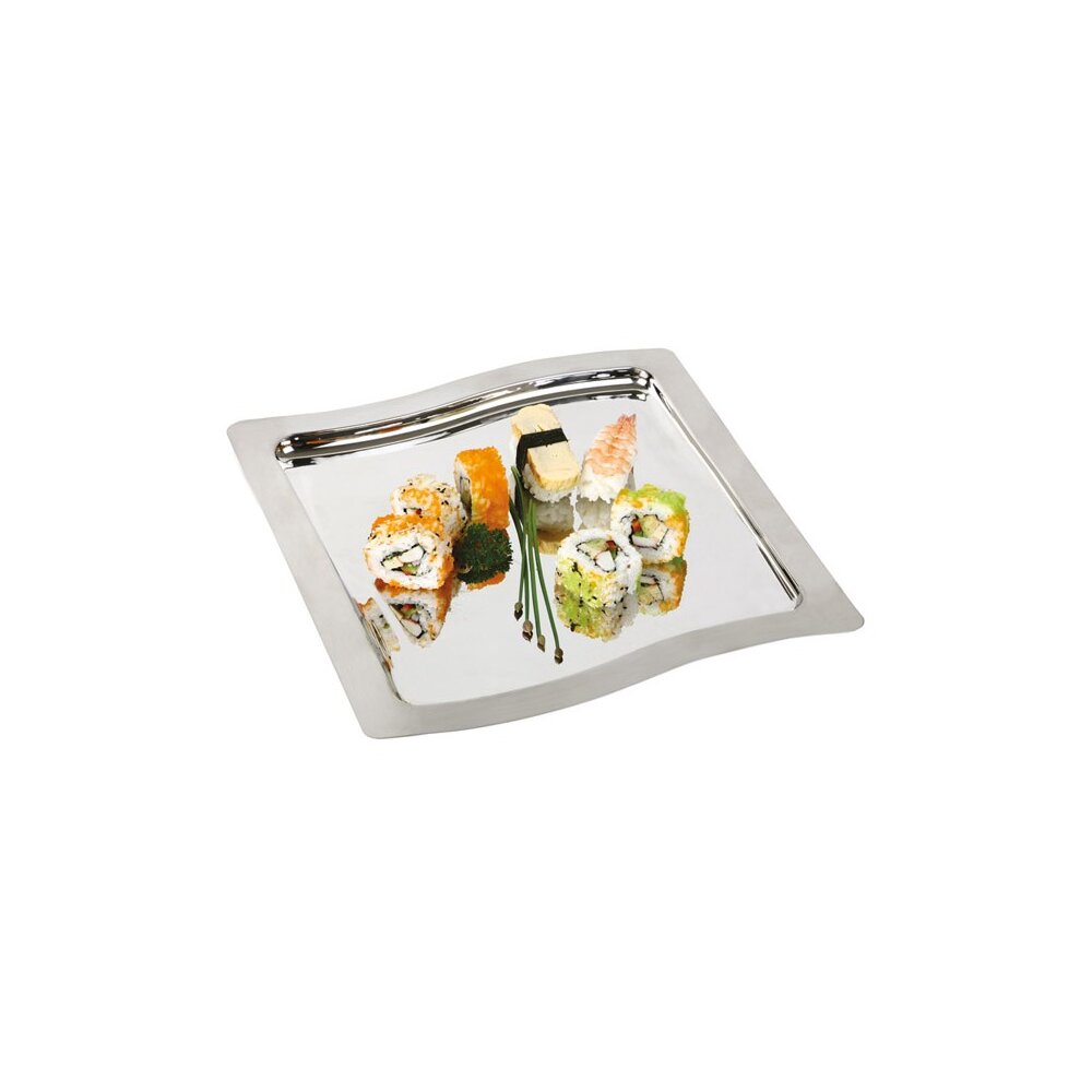 Details zum Artikel Tablett SWING 32,5 x 32,5 cm, H: 1 cm 18/0 Edelstahl Rand matt poliert innen hochglanzpoliert