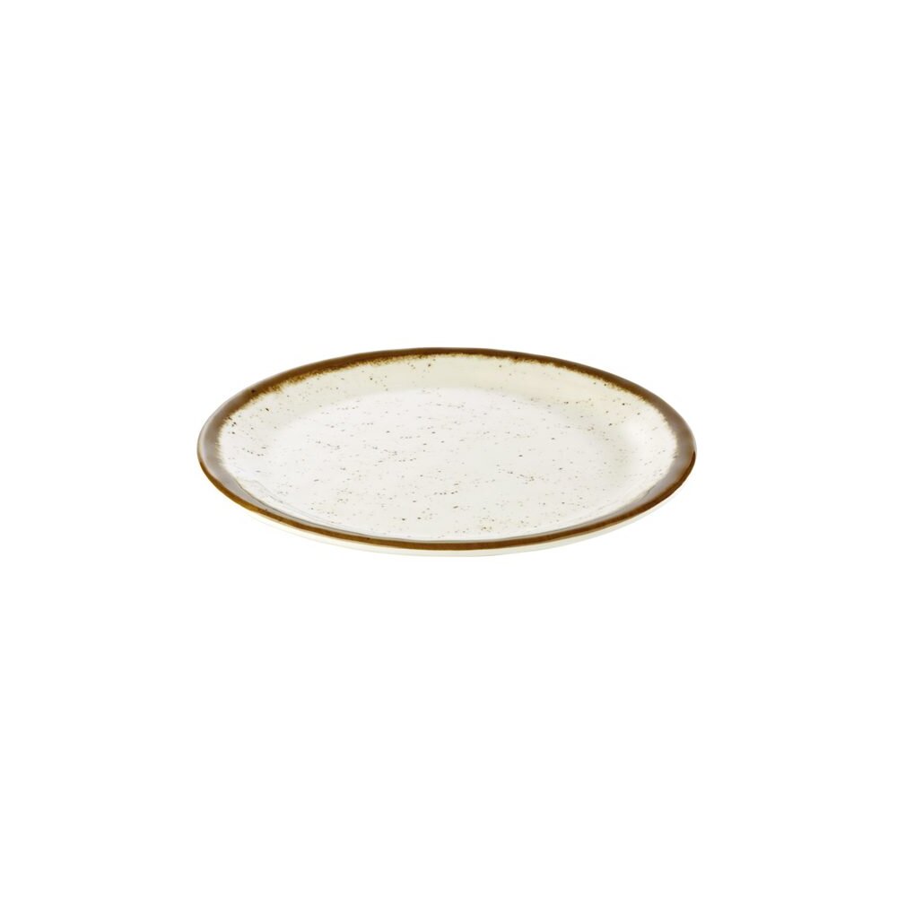 Details zum Artikel Teller, flach STONE ART Ø 25 cm, H: 2 cm Melamin innen: Dekor, weiß Rand: braun außen: weiß