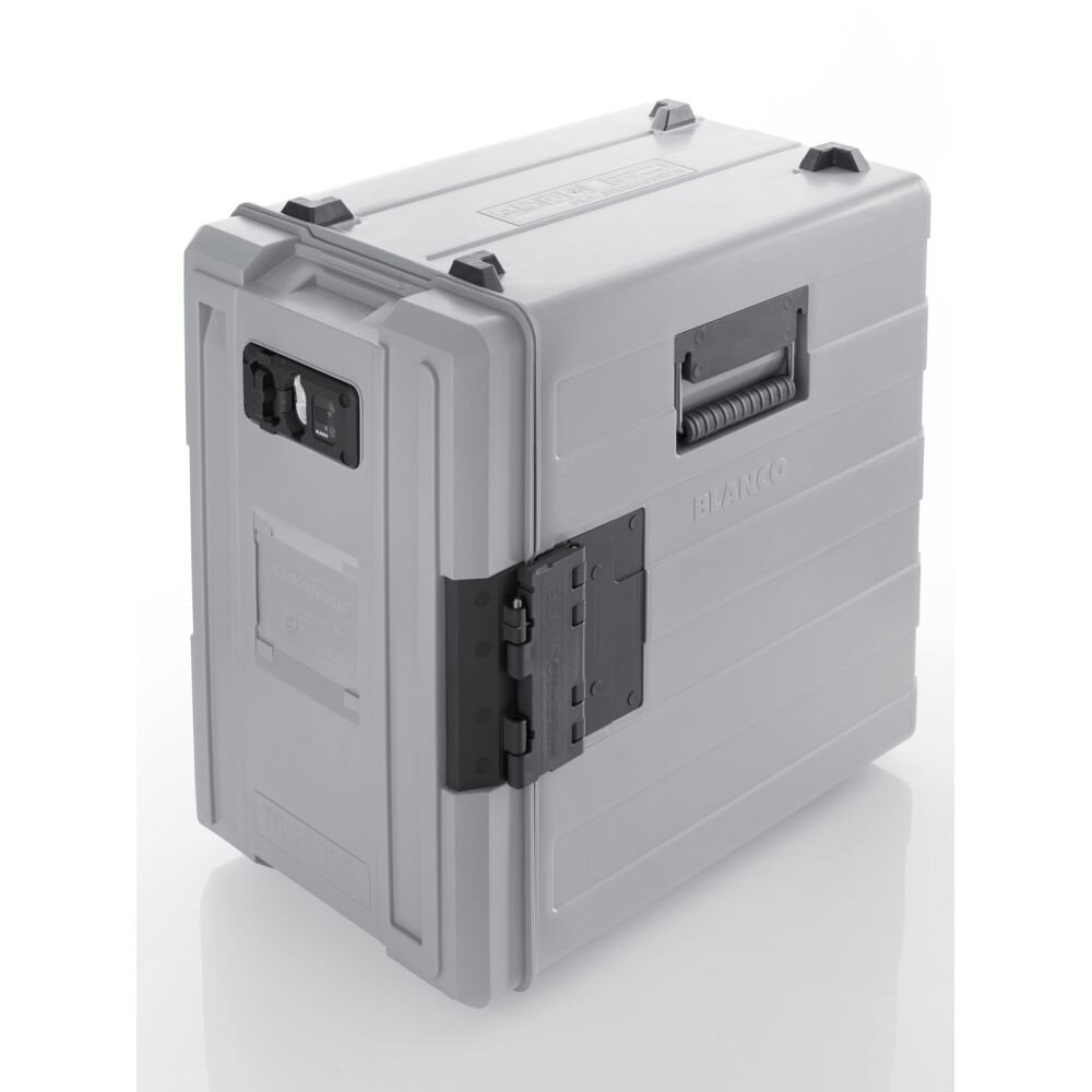 BLANCOTHERM 620 KBRUH Speisentransportbehälter aus Kunststoff, umluftbeheizt, mit digitalem Temperaturregler zur gradweisen Regelung der Temperatur im Innenraum von +40 °C bis +85 °C, mit Flügeltür Kapazität: 3x GN 1/1-150 oder deren Unterteilung Anzahl Auflagensicken: 12 Paar Auflagesicken Sickenabstand: 39 mm