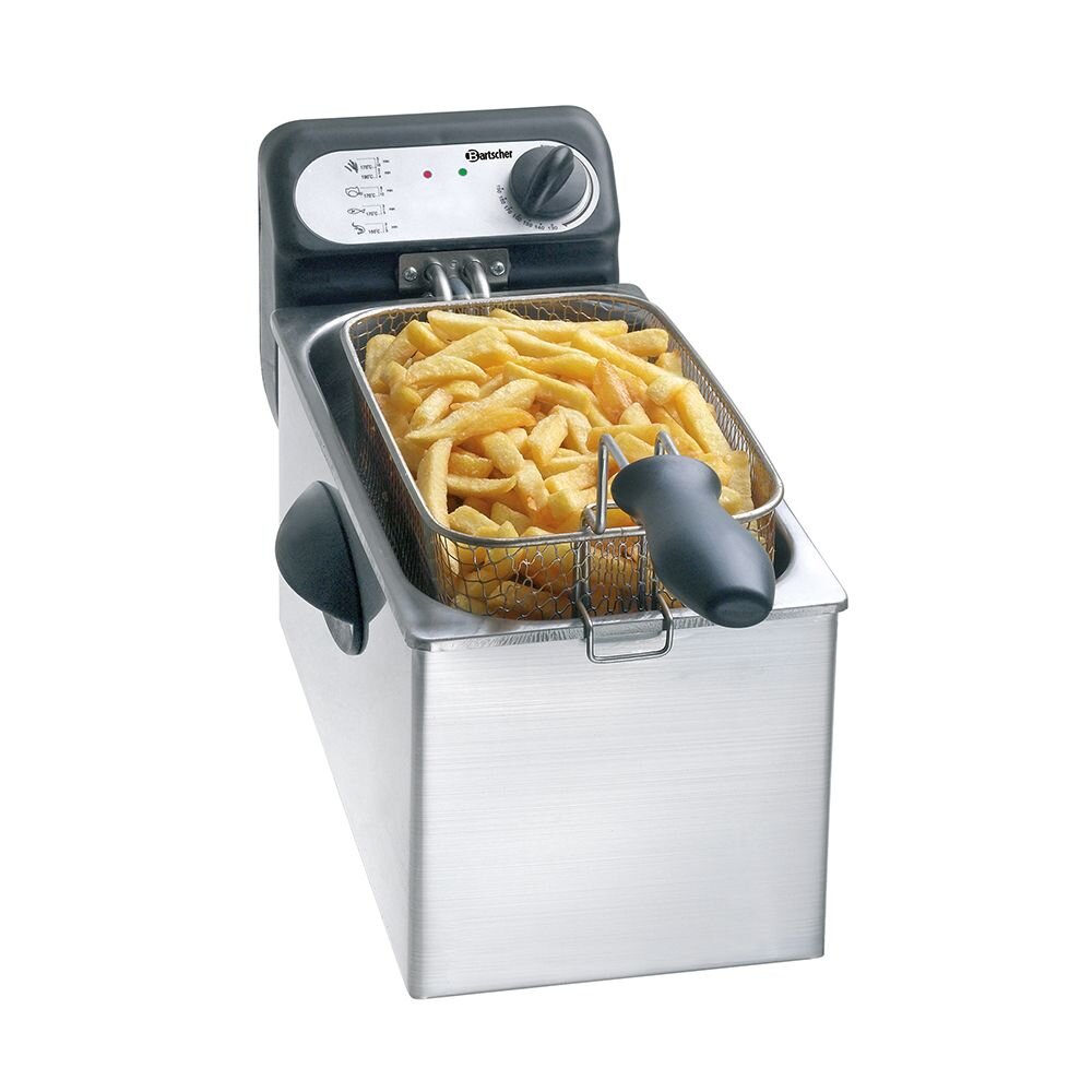 Fritteuse PETIT“ Gehäuse und Deckel aus Edelstahl, Schaltkasten aus Kunststoff 1 Becken, 1 Korb, Inhalt: 3 Liter Anschlusswert: 2,0 kW / 1 NAC 230 V 50 Hz Maße: B 220 x T 400 x H 240 mm Sicherheitsthermostat (Überhitzungsschutz) Gerät ist nicht für den dauerhaften gewerblichen Einsatz geeignet. „