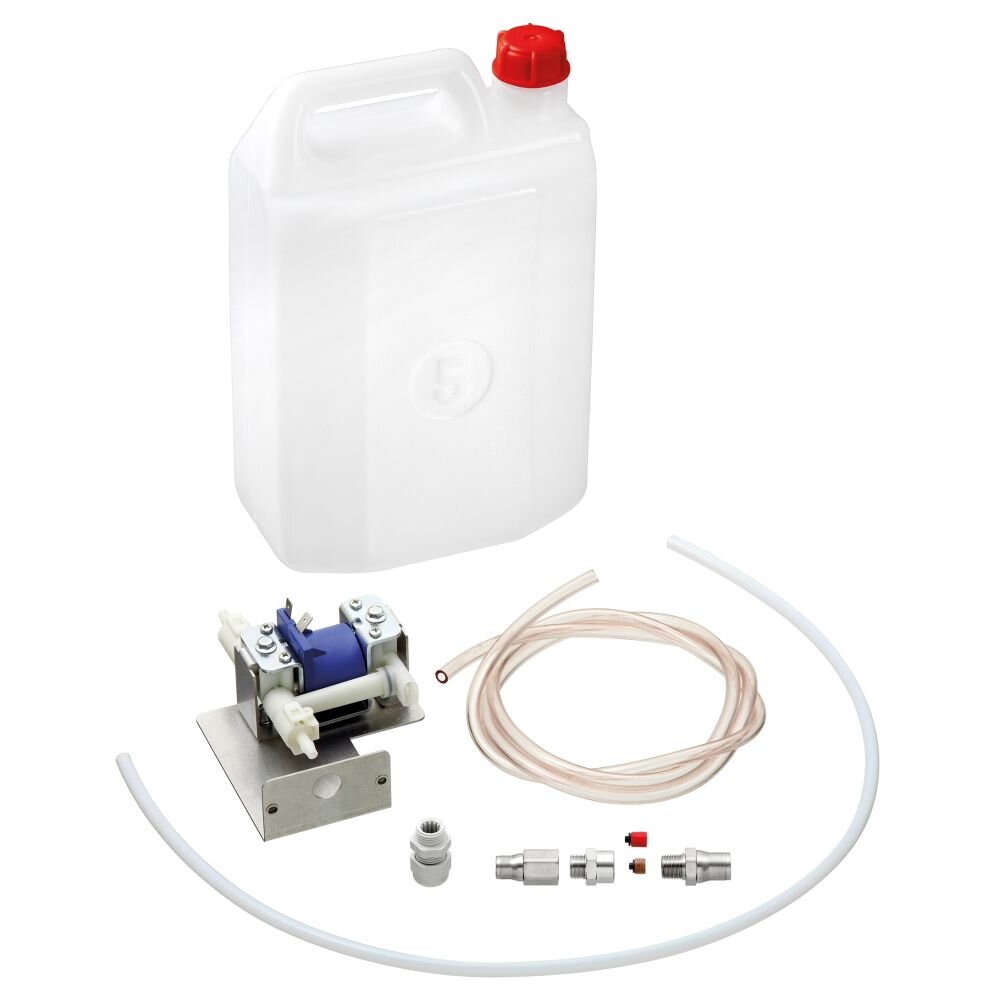 Kombidämpfer-Beschwadungskit Kombidämpfer-Beschwadungskit Die unkomplizierte Alternative: das Beschwadungskit ermöglicht eine Beschwadung auch ohne Festwasseranschluss Kit bestehend aus: Kunststoffkanister (5 L), Pumpe, Installationsmaterial, 2 Verbindungschläuche: – 150 cm (Kanister – Pumpe) – 80 cm (Pumpe – Beschwadungsrohr) Passend zu den Bartscher Kombidämpfern der M- und E-Serie: 116613, 116615, 116617, 116620, 1166271, 1166301, 116523, 116525, 116527, 116530