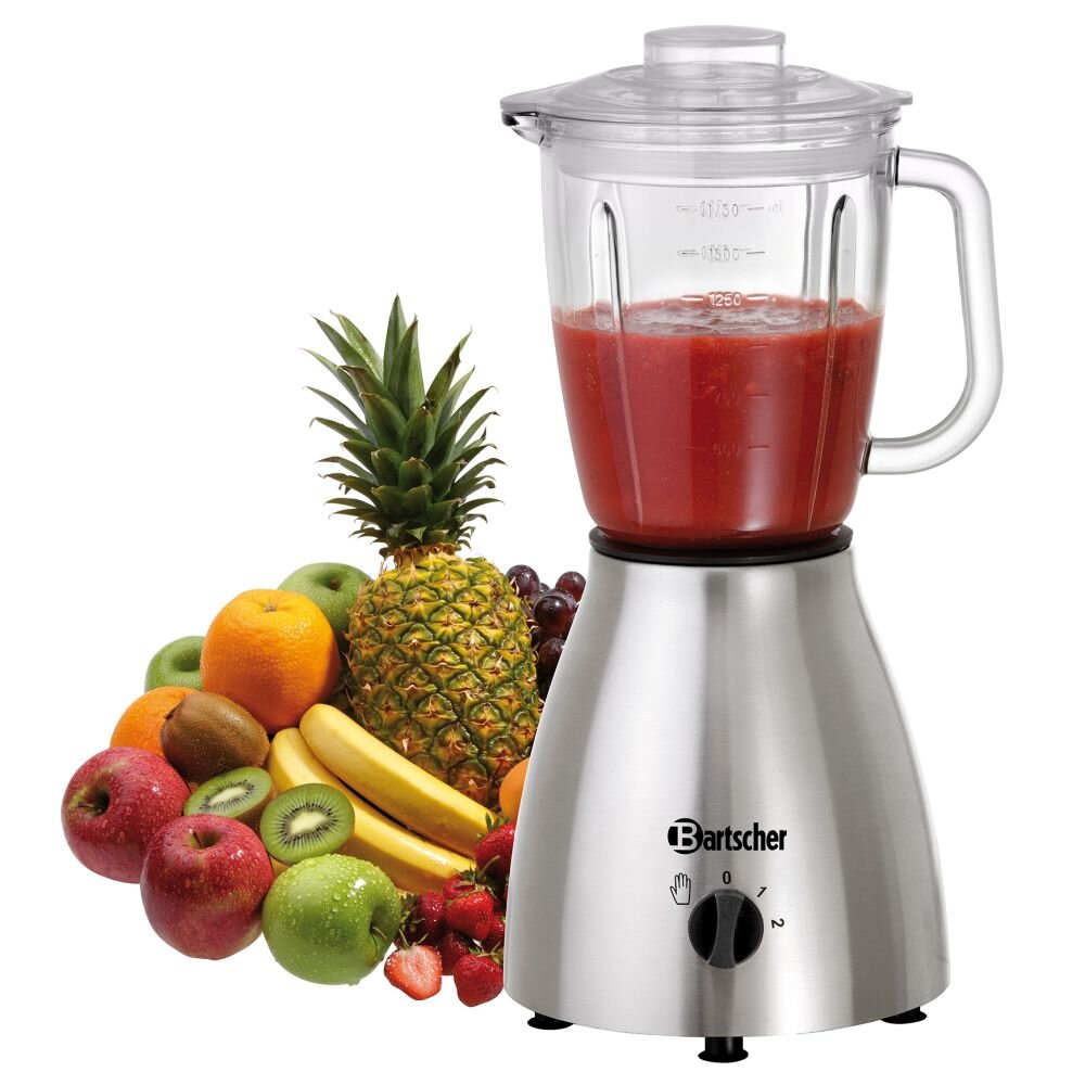 Mixer / Blender Ideal zum Pürieren von Früchten oder Zerkleinern von Gemüse, etc.! Messer aus Edelstahl 2 Geschwindigkeitsstufen, max. 16000 UpM Impulsfunktion Sicherheitsschalter Glasbehälter, Inhalt: 1,75 Liter Anschlusswert: 0,4 kW / 230 V 50 Hz Maße: Ø 220, Höhe 420 mm Gerät ist nicht für den dauerhaften gewerblichen Einsatz geeignet.